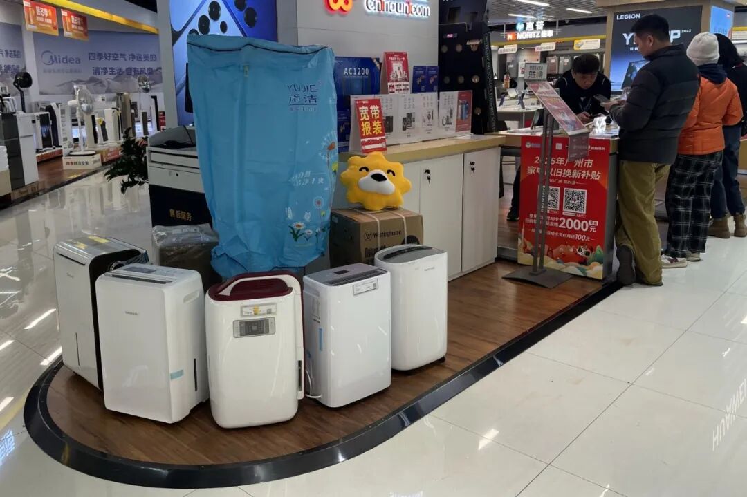 这段时间,除湿类的各种家电更是迎来热销,其中,广东地区销量居榜首,广西、海南、福建等地消费者对除湿机的需求也出现显著提升。与1月相比,2月份除湿机搜索量增长超过230%,其中——广西干衣机销量增长超过5倍,除湿机销量增长超过2倍;海南除湿机销量增长超过180%,干衣机销量增长超过140%。据了解,自3月以来除湿类小家电销量同样呈现逐日增长趋势。广州一家大型家电卖场工作人员表示,近一个星期以来,南方市场烘干机销量同比增长106.2%,空调销量同比增长超150%。消费者正在选购烘干机