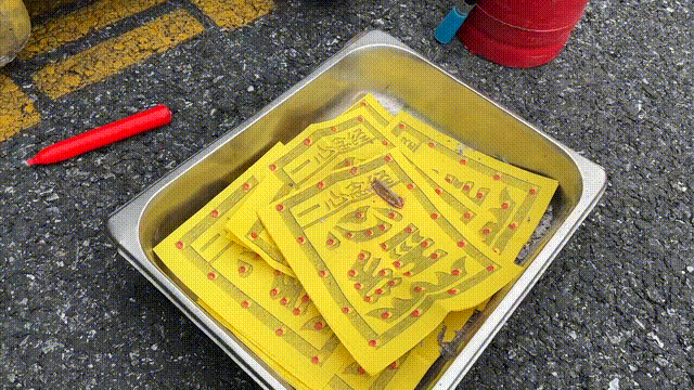 消防员点燃立香,当其充分燃烧后,将前端烧红香灰段剪下放在纸钱上,模拟风吹落香灰点燃附近可燃物。