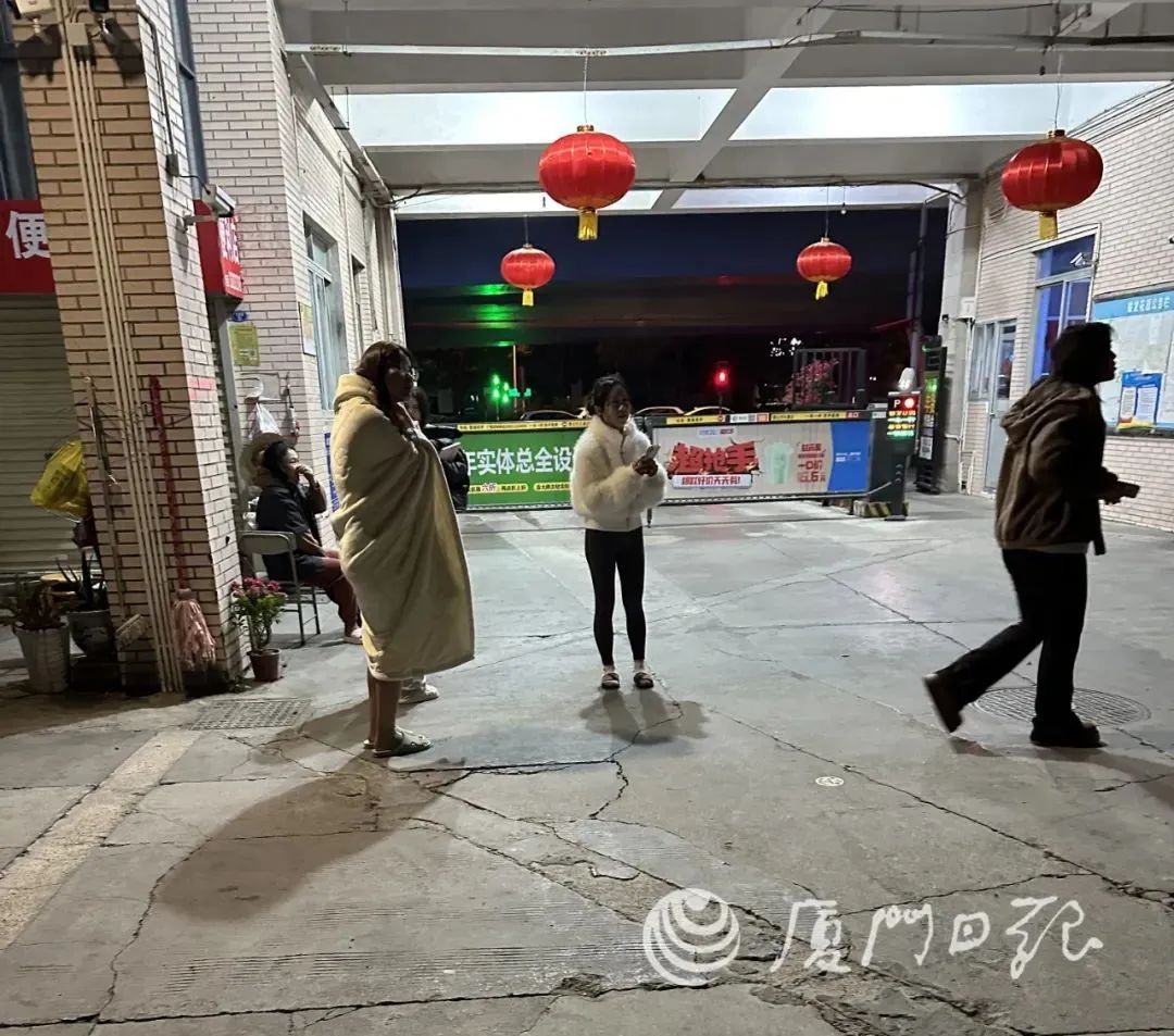 有市民披着被子跑下楼