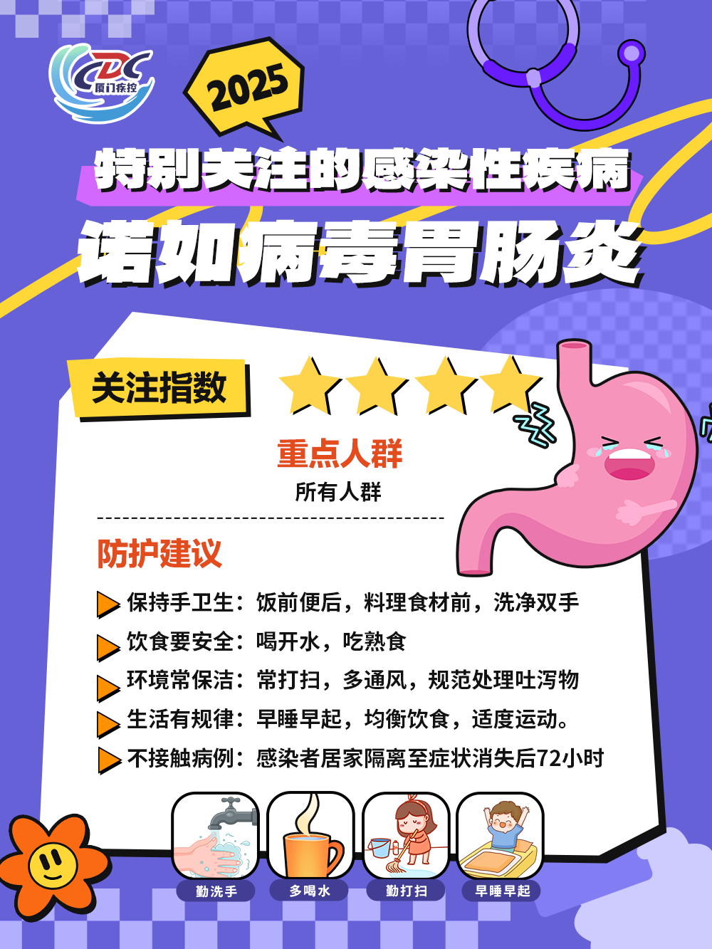 熟悉的它,又回来了! 通常,每年的1月是厦门平均气温最低的月份。春节假期将至,春运即将启动,人员流动加大,呼吸道和肠道传染病传播风险上升。