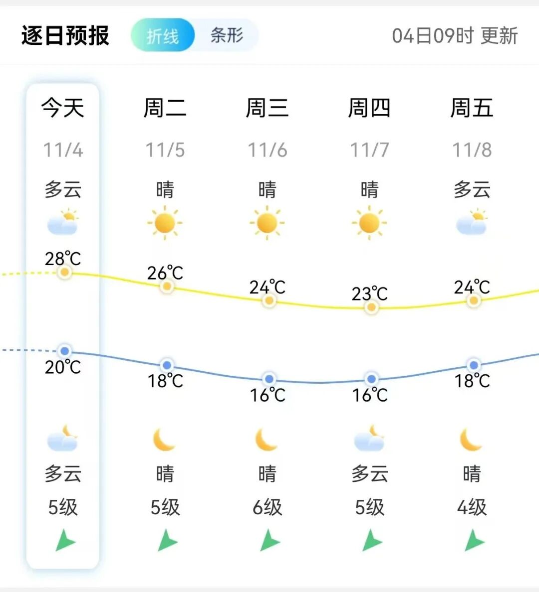 夜晨最低气温仅16℃